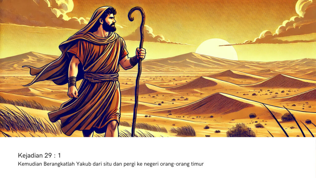 Yakub harus meninggalkan rumahnya setelah menipu saudara kembarnya, Esau, demi mendapatkan hak kesulungan. Esau yang marah ingin membunuhnya, sehingga Yakub, atas saran ibunya, pergi ke Haran untuk mencari perlindungan di rumah pamannya, Laban.