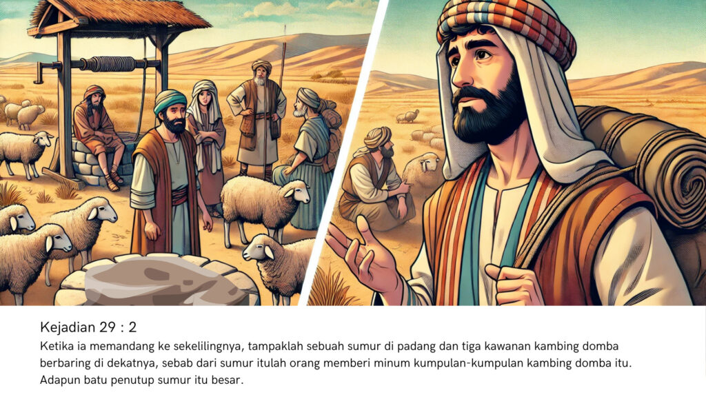 Perjalanan panjang itu akhirnya membawanya ke sebuah sumur besar di Haran, tempat para gembala berkumpul. Sumur tersebut ditutup dengan batu besar yang hanya bisa dipindahkan jika mereka bekerja sama.