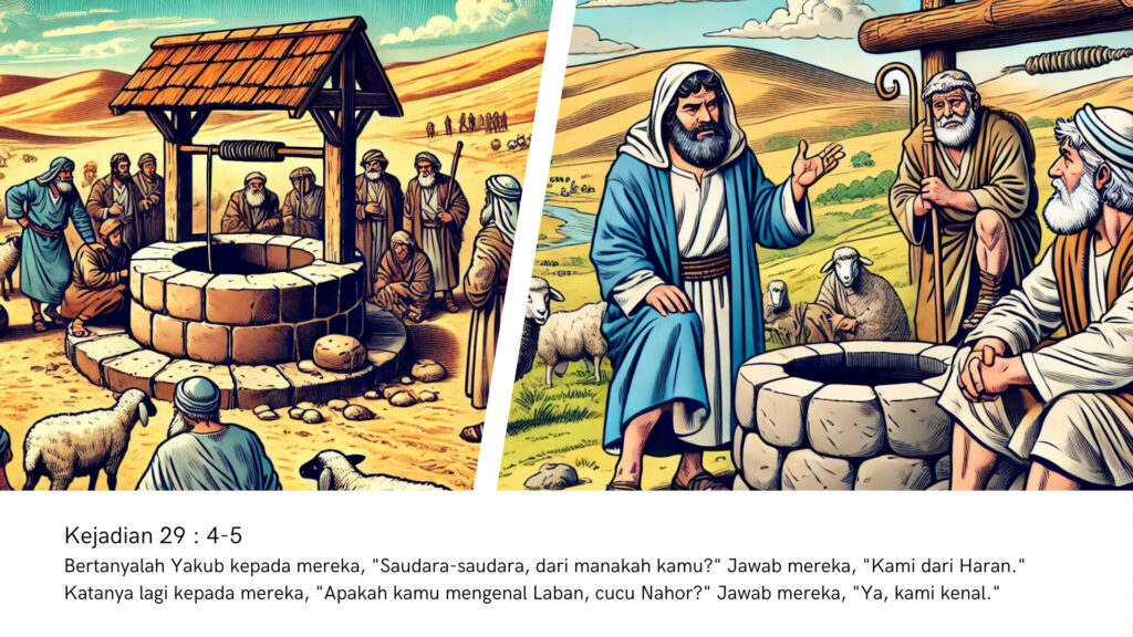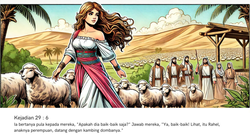 Saat duduk di sana, Yakub bertanya kepada para gembala apakah mereka mengenal Laban. Mereka pun menjawab, “Ya, kami mengenalnya. Bahkan, anaknya, Rahel, sedang dalam perjalanan ke sini.”
