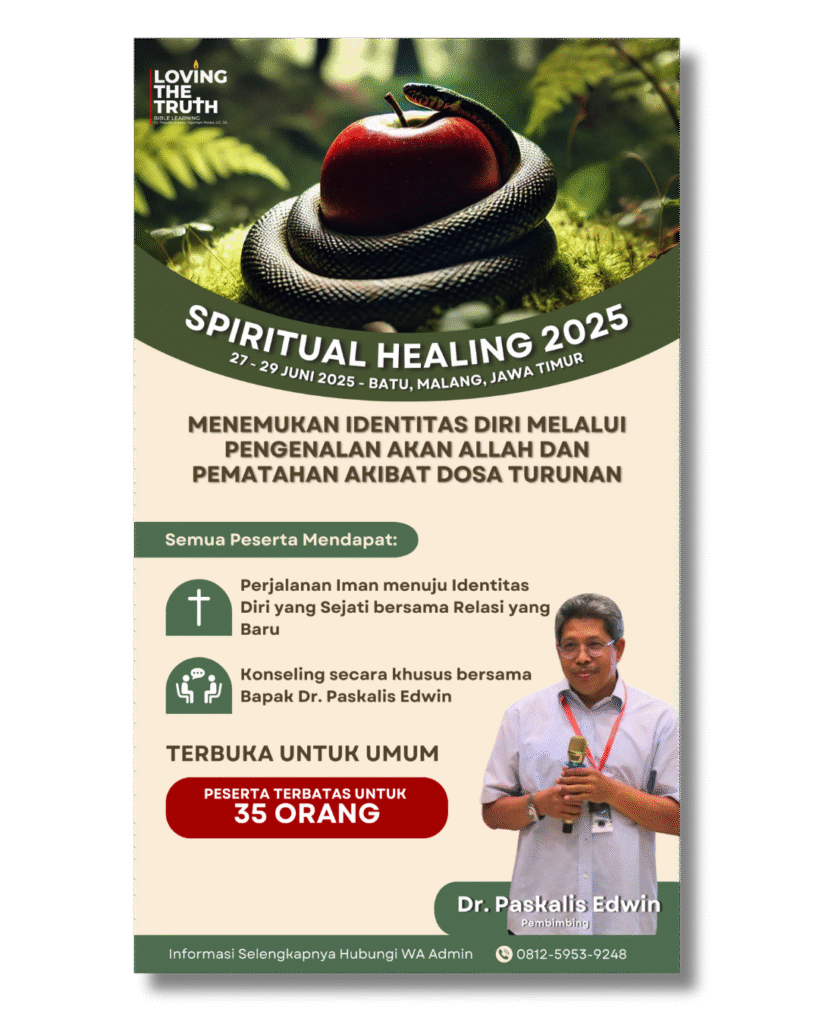 Spiritual Healing adalah salah satu program unggulan dari Loving The Truth, yang diselenggarakan satu tahun sekali. Program ini hadir sebagai ruang refleksi mendalam untuk membantu setiap peserta menemukan identitas diri mereka yang sejati melalui pengenalan akan Allah.